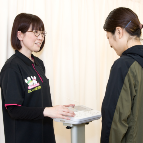 まずは体組成計によるボディチェック、食生活のカウンセリング、実際の施術にも使用する機器の体験を先に行なっております。