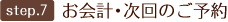 お疲れ様でした。受付にてお会計、次回のご予約を承ります。