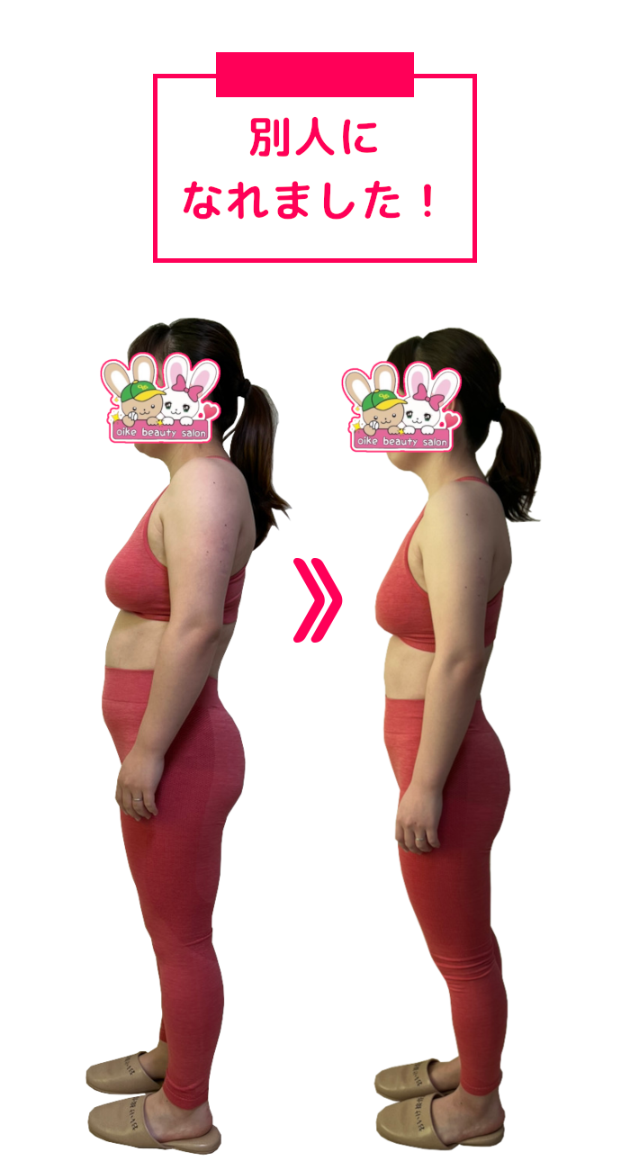 私と同じようにストレスで増えてしまった体重や体型の悩みを抱えている方においけ美容整体院ダイエットプログラムは自信を持ってお勧めできます。一緒にムリなく、効率の良いダイエットしてみませんか?