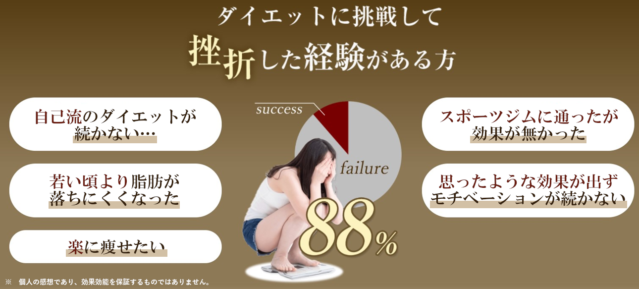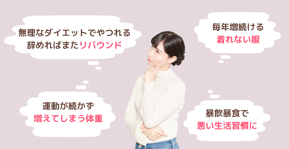 ダイエットの番組を観ては試し、いいダイエットがあるよ、と話を聞けば試しと、いくつものダイエットにチャレンジしましたが、何をしても長続きせずもちろん良い結果につながることもありませんでした。