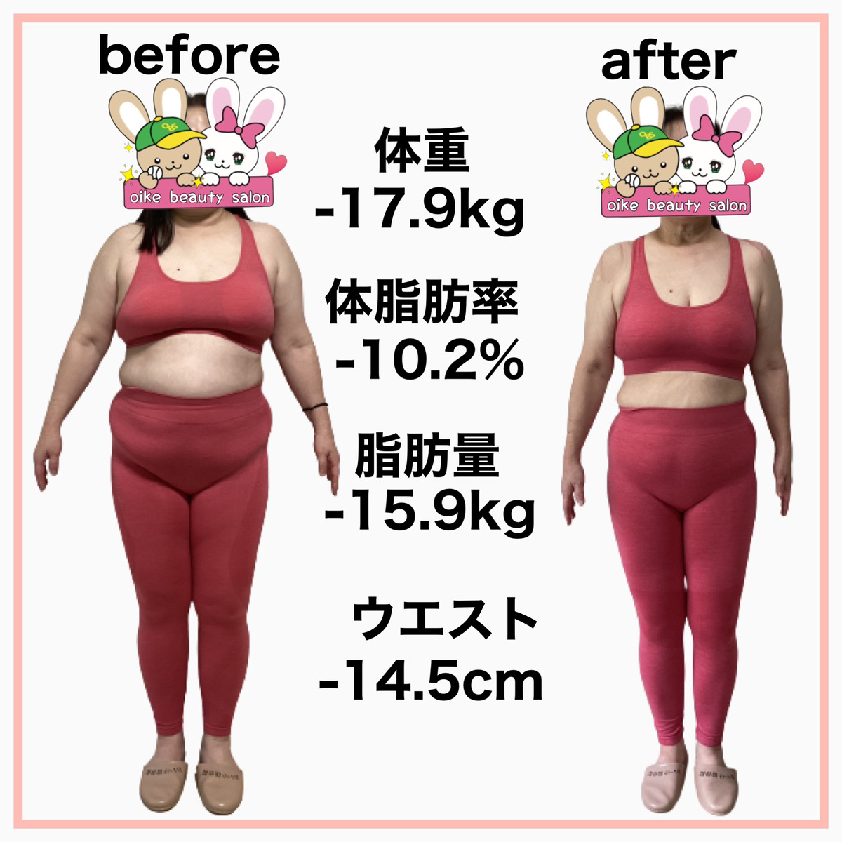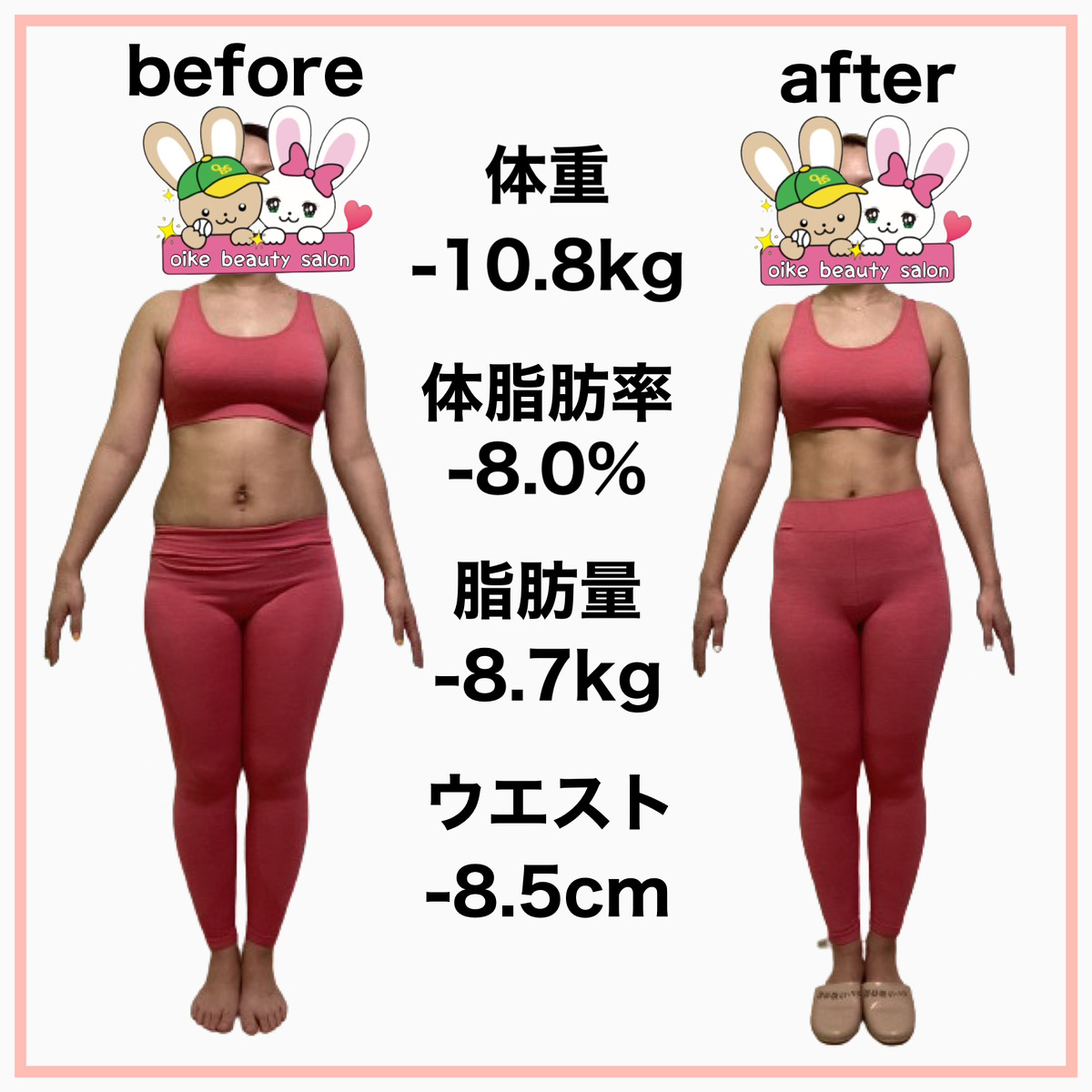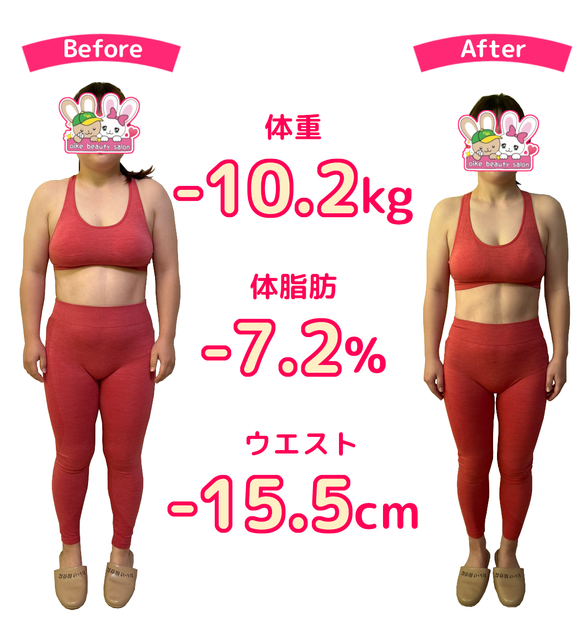 私と同じようにストレスで増えてしまった体重や体型の悩みを抱えている方においけ美容整体院ダイエットプログラムは自信を持ってお勧めできます。一緒にムリなく、効率の良いダイエットしてみませんか?