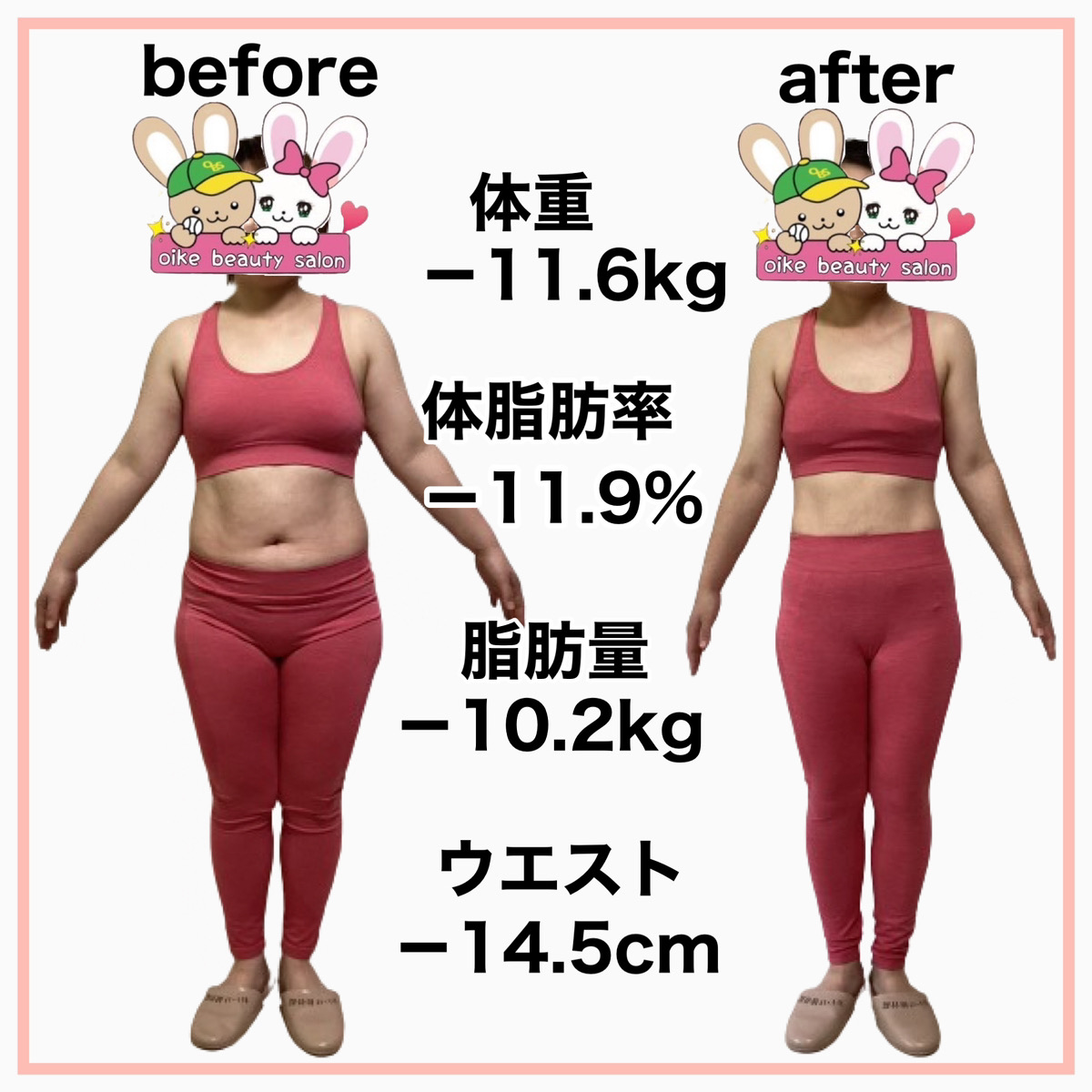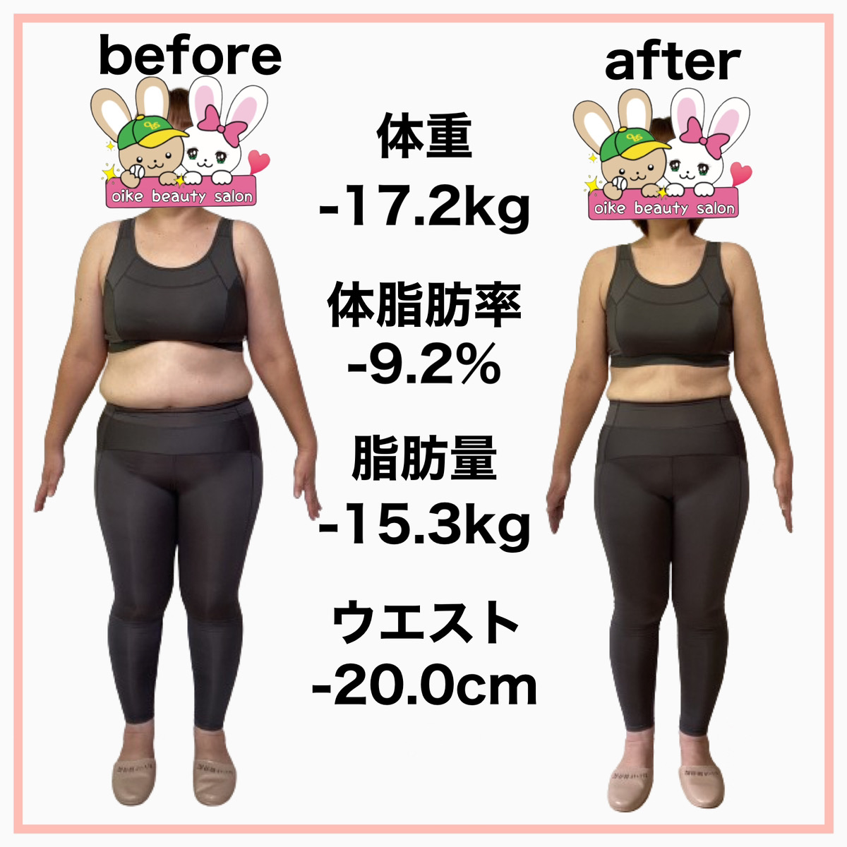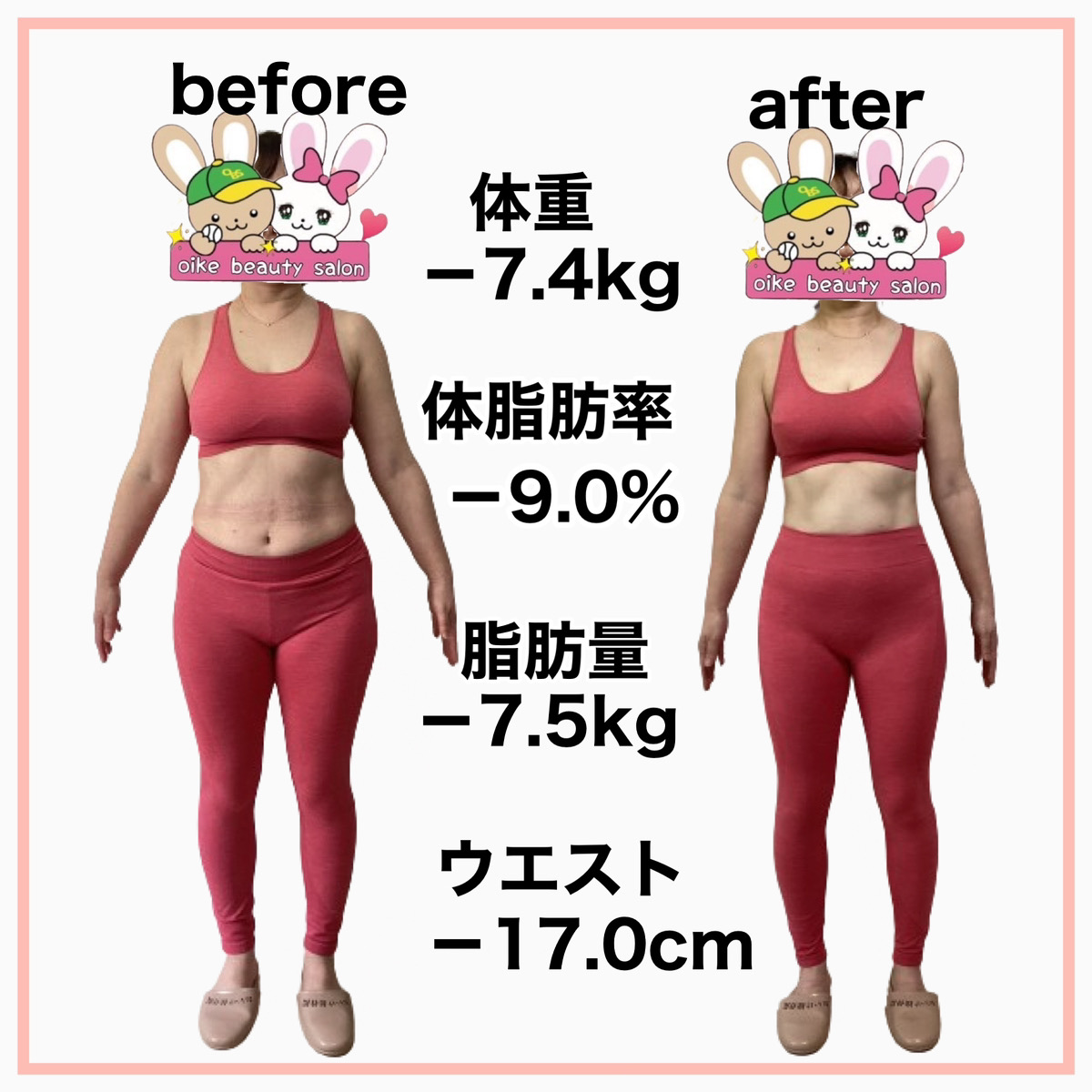 私と同じようにストレスで増えてしまった体重や体型の悩みを抱えている方においけ美容整体院ダイエットプログラムは自信を持ってお勧めできます。一緒にムリなく、効率の良いダイエットしてみませんか?