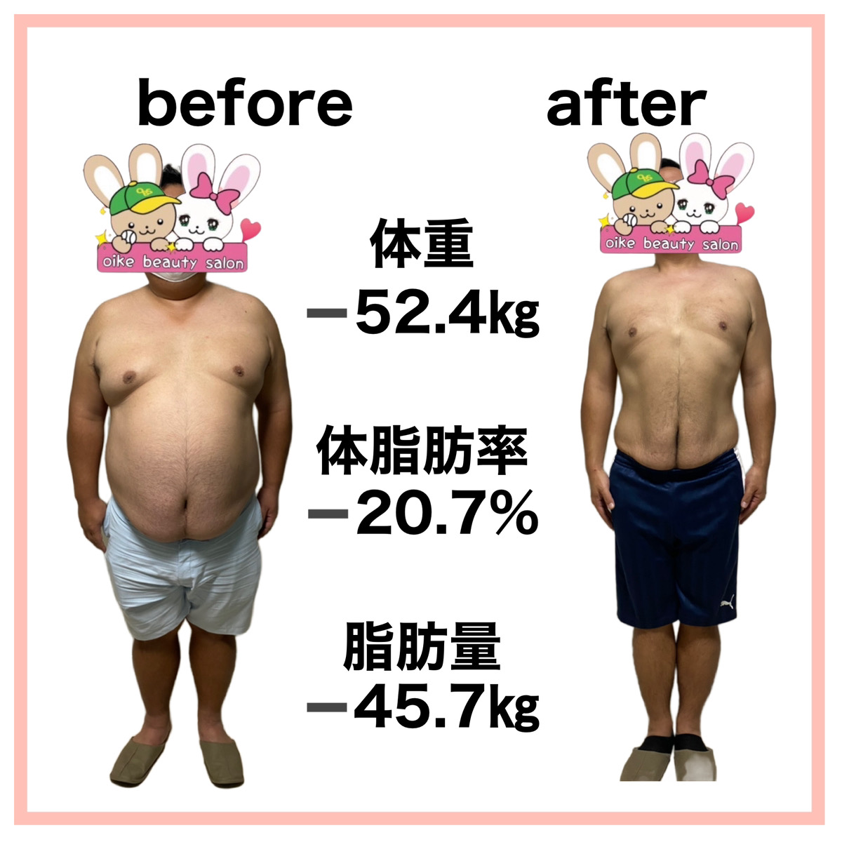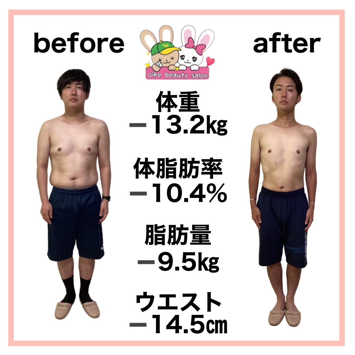 付き合っていた彼女へプロポーズを考えており、少しでも成功に近づける為ダイエットを決意!丁度おいけ美容整体院でダイエットを始めるという事で痩せる仕組みを学び、自己流ダイエットではなく、遺伝子検査や体組成計での細かな測定などを行い自分の身体の特性に合わせたおいけ美容整体院式ダイエットを行いました。