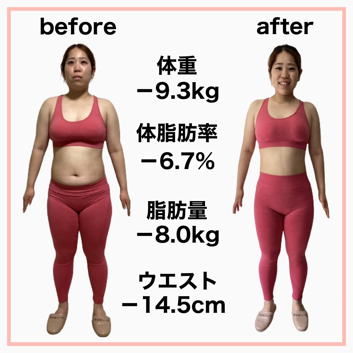 体重は2ヶ月で−8kg、3ヶ月後には−10kgのダイエットに成功しました!その結果ダイエットのきっかけとなったプロポーズも成功して大大大満足です💛